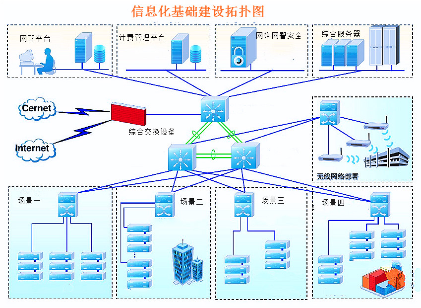 信息化基础建设系统的结构、性能要符合国内、国际标准和规范,满足各个系统目前和未来发展的需要。布线系统要具有高性能和相当的超前性,能够满足各个系统目前和未来新技术、新产品对传输的需求。 同时基础建设系统在设计和实施中应充分考虑办公的具体特点,在信息点的选取、线缆配置等各方面满足网络系统的要求。